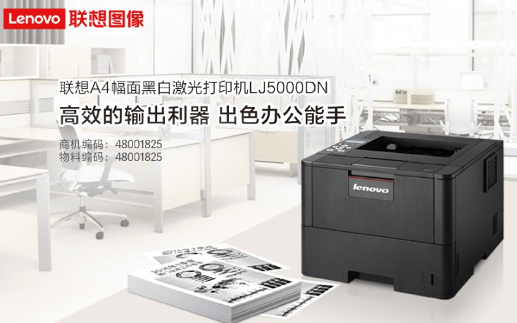 联想(Lenovo)LJ5000DN黑白激光打印机 高速打印 自动双面 办公商用 有线网络打印(激光打印机/黑白/A4/高速机) 产品类型 激光打印机 颜色类型 黑白 打印幅面 A4 打印速度 高速机