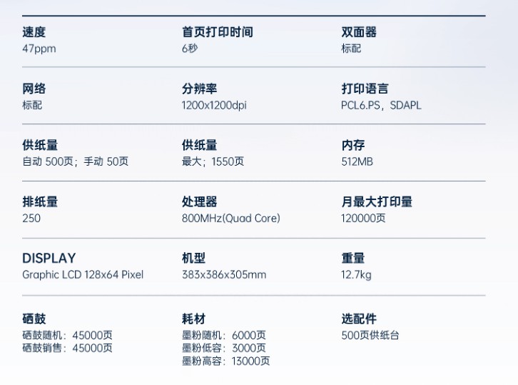 产品类型 激光打印机 颜色类型 黑白 打印幅面 A4 打印速度 中速机